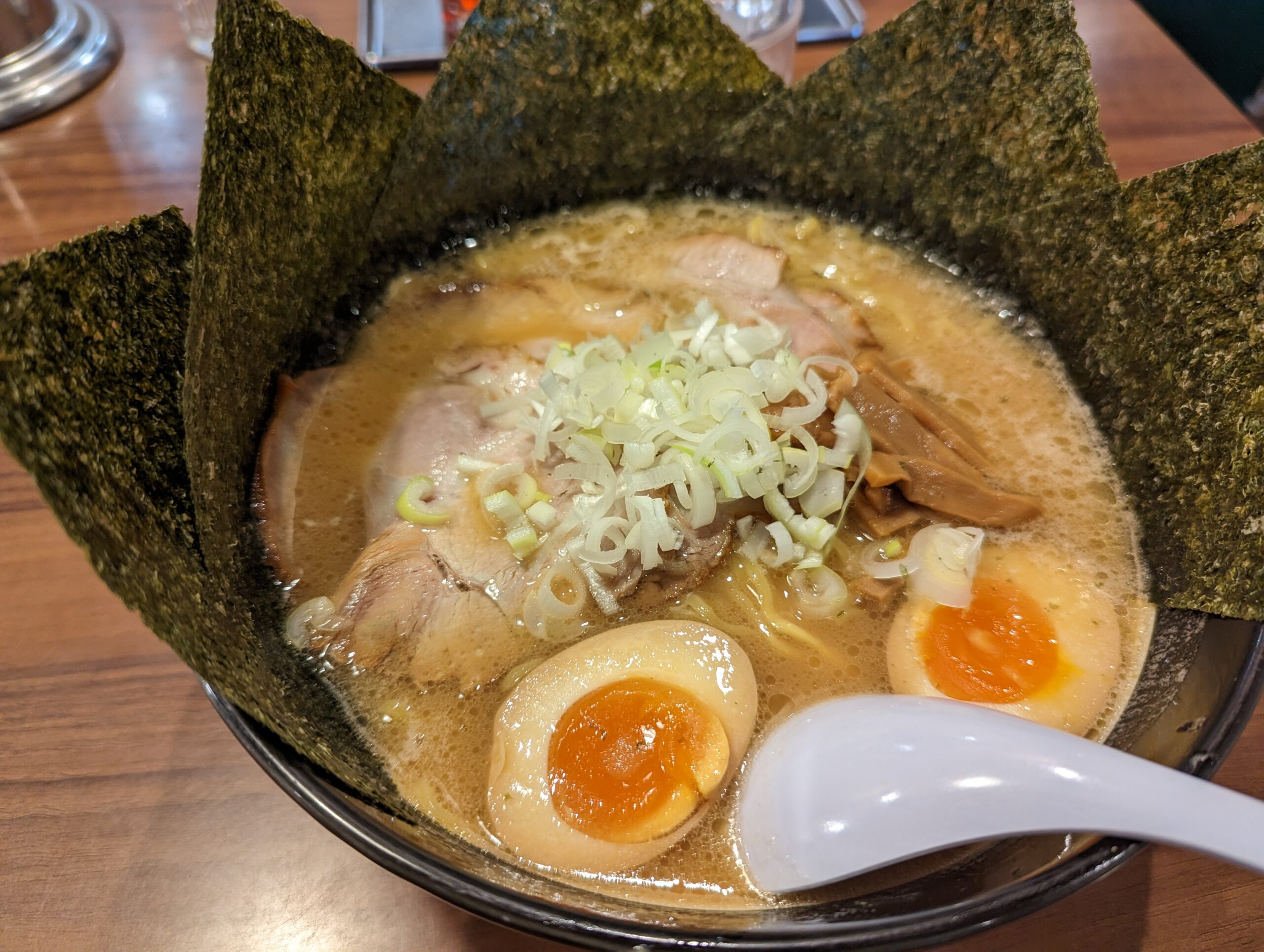 おやじ麺(味噌)、玉子と海苔トッピング。